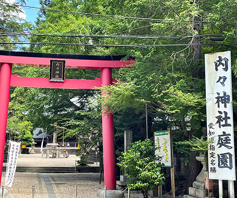 内々神社は「延喜式」神名帳に記載されるいわゆる「式内社」であり、景行天皇の41年に創建されたとされる。伝承では、日本武尊の東征に随行した主祭神であるタケイナダネノミコトは、駿河の海で落水し絶命した。それを伝え聞いた日本武尊が「ああうつつ(現)かな」と歎いたことが社名の由来となっているとされている。